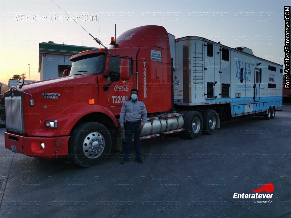 Durante este viernes 27 de agosto el vehículo VePorAgua de FEMSA, arribó a la instalaciones de la Bodega Coca-Cola FEMSA en Poza Rica, sitio en donde recibirá el mantenimiento respectivo, afín de estar en óptimas condiciones de higiene y mecánicas, para apoyar a los ciudadanos necesitados a partir de este fin de semana.