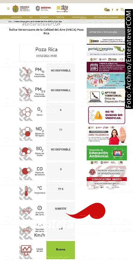 La Unidad de monitoreo ambiental de la Secretaría del Medio Ambiente (SEDEMA) del Estado de Veracruz se encuentra sin trabajar, autoridades municipales encargadas del tema desconocen el motivo por el cual esta se encuentra sin funcionar, pues el último dato que se tiene por parte de esta es del cuatro de febrero del presente años.