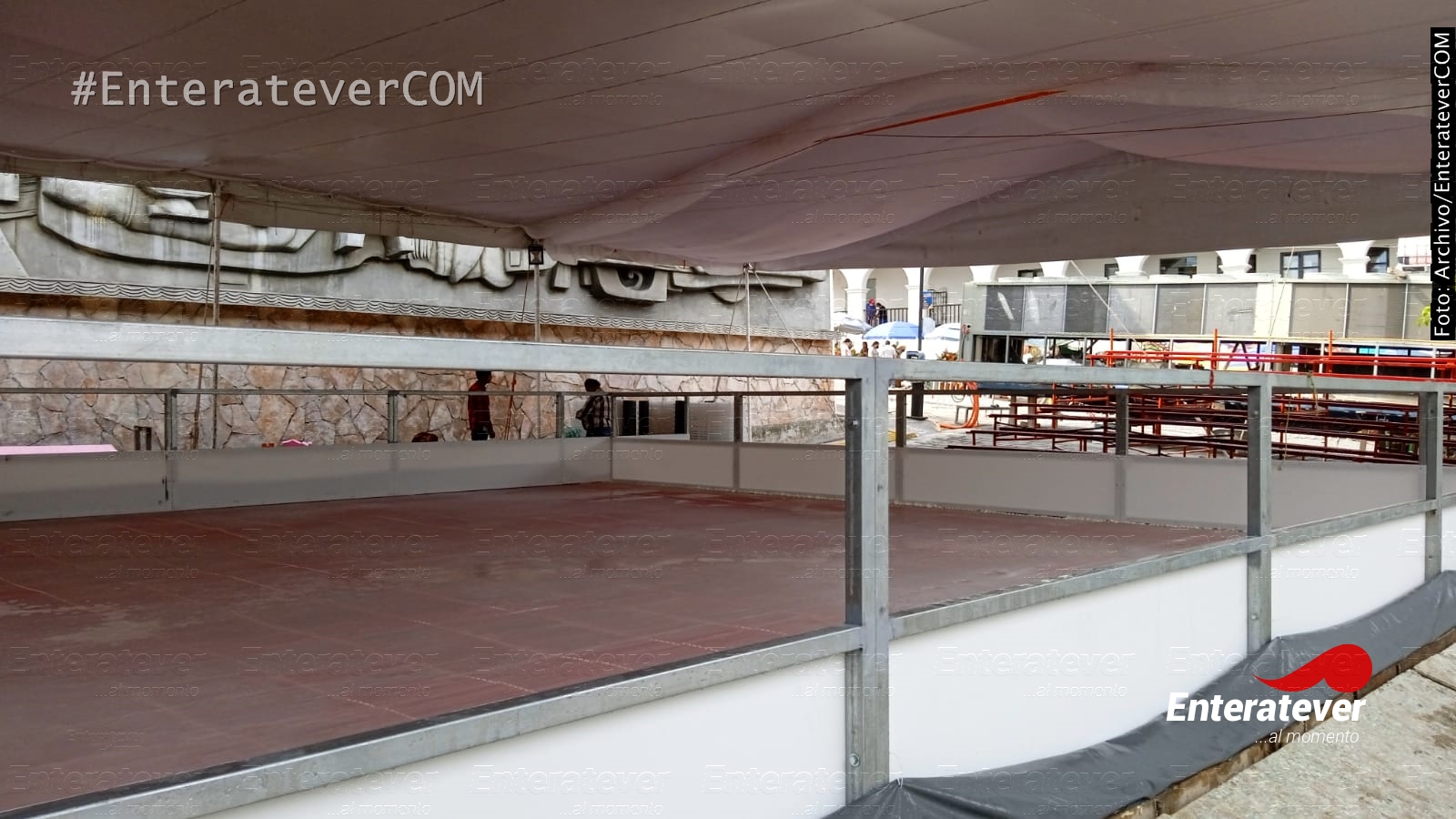A pocos días de que sea inaugurada la pista de hielo del festival Orgullo Navideño en Papantla, continúan los preparativos de su instalación en la zona centro de la ciudad, específicamente donde se encuentra el Mural Homenaje a la Cultura Totonaca.