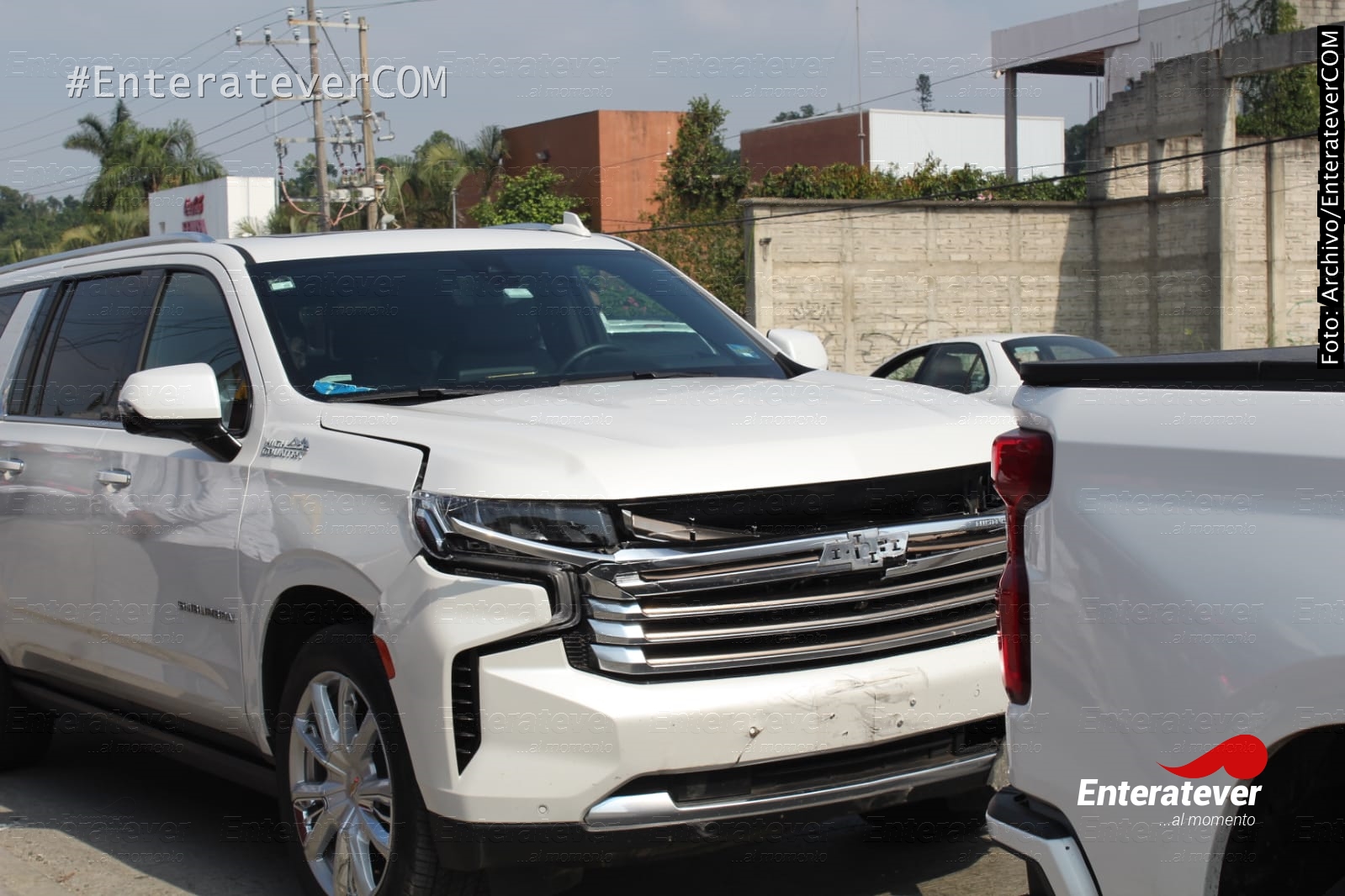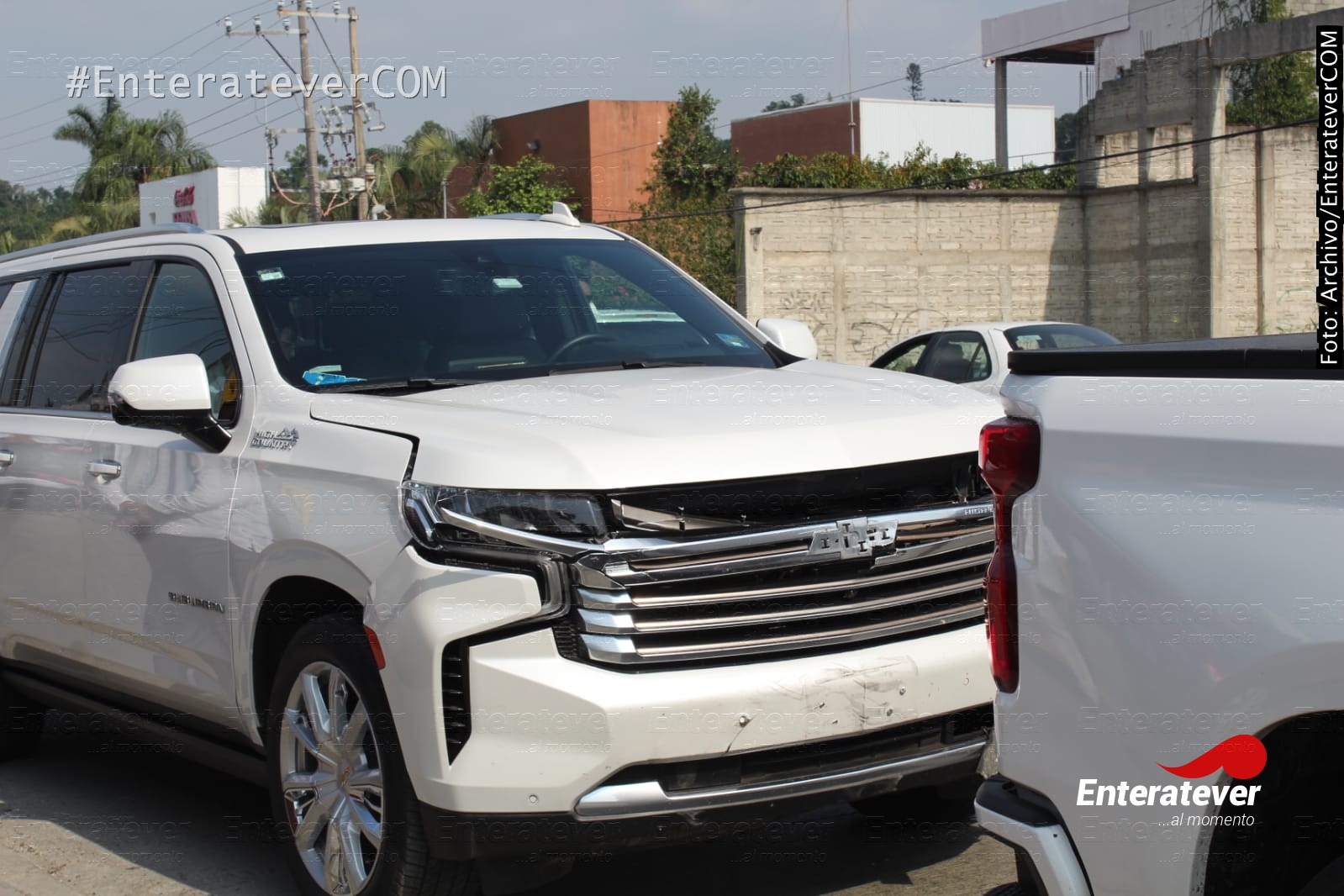 La camioneta Chevrolet Suburban en la que transitaba en mandatario chocó contra una camioneta de modelo atrasado, por lo que al lugar arribaron elementos de la policía vial y policía municipal para apoyar a qué se evitara el trafico por el accidente que se registro en la zona.