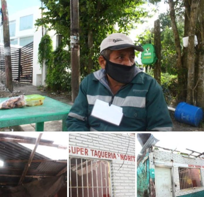 Luego del paso del Huracán «Grace» Leopoldo Jiménez Olarte resultó afectado en dónde tenía su negocio desde hace 30 años, súper taquería Norita, lugar conocido por muchos papantecos que acudían para degustar sus tacos de pastor. Con la llegada del fenómeno meteorológico ya no tuvo oportunidad de levantar nuevamente el negocio que por varios años le ha dado de comer.