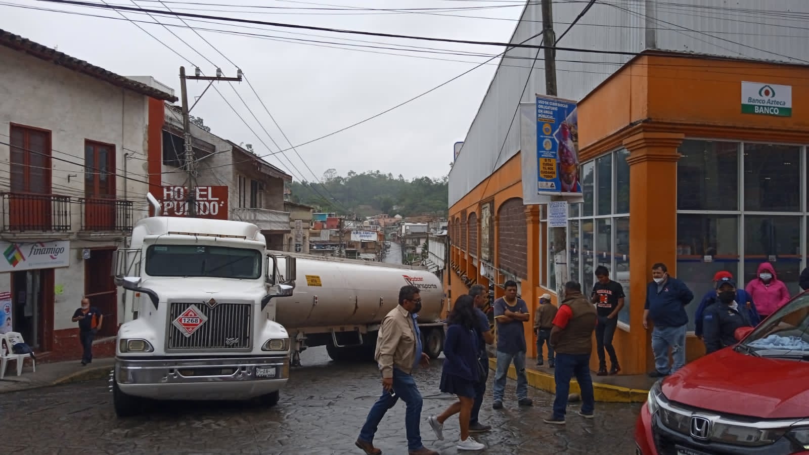 Unidad pesada obstruye vialidad en principal calle de Papantla