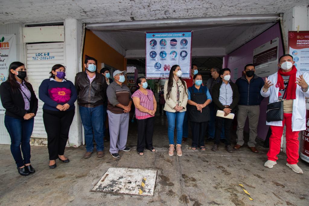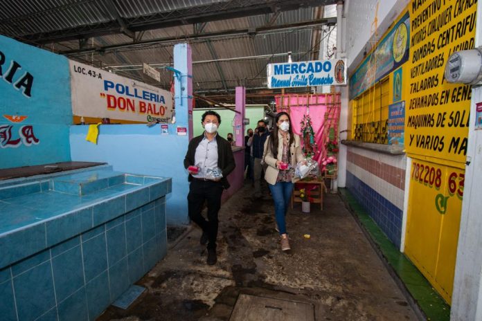 Las acciones constan de sanitización de todos los espacios del mercado y entregas de kits preventivos a la población y locatarios, para fortalecer las medidas de cuidado de la ciudadanía.