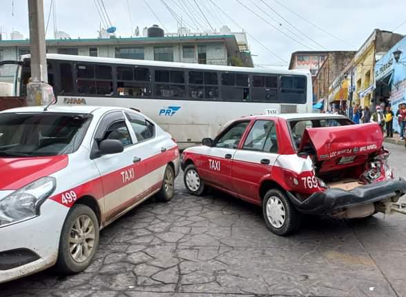 Luego de quedarse sin frenos, un camión se estampa contra una unidad de servicio de taxi, esto en el centro de Papantla sobre la calle 20 de noviembre, los hechos se registraron durante la mañana de este día viernes 28 de enero.