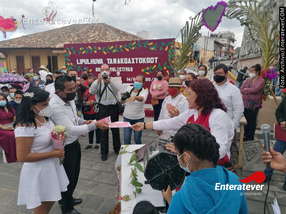Con gran respuesta, se realiza en Papantla las bodas colectivas, actividad que cada año reúne a decenas de parejas que desean darle formalidad a su matrimonio, al menos un promedio de 70 a 80 parejas fueron las que en este día participaron.