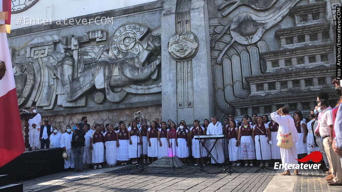 El himno nacional y el himno a Veracruz fue entonado en lengua Tutunakú y en español a cargo del coro de maestras y maestros de educación indígena de los sectores 05 y 14