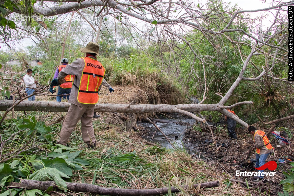 Personal de Ecología y Medio Ambiente, acudió a la colonia La Floresta para realizar trabajos de limpieza en el arroyo, mismo que representaba un foco rojo de contaminación debido a la contaminación de desechos sólidos e hidrocarburos.