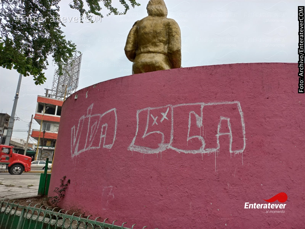 En la parte trasera del monumento tiene la leyenda “ La vida loca” mientras que por la parte de enfrente colocaron el mensaje “Te amo”, ciudadanos desconocen quien pudo haber sido la persona que colocó dichas frases en el momento, por lo que hasta el momento este no ha sido limpiado.