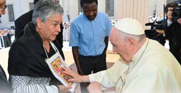 Dicho encuentro se realizó con la compañía de representantes de la Provincia Mexicana de la Compañía de Jesús así como el Centro de Derechos Humanos Miguel Agustín Pro Juárez y dónde el Papa la bendijo a ella y a las madres mexicanas que continúan en la búsqueda de sus desaparecidos.