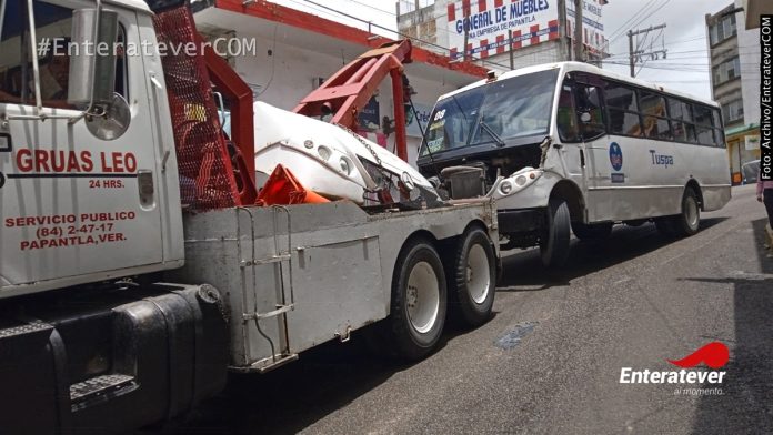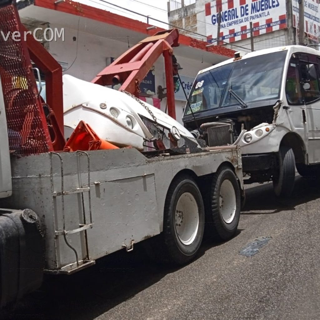 Luego de tener una falla mecánica que se le presentó en la zona centro de Papantla, una unidad de servicio urbano coaliciono con dos taxis y termino impactactandose en una conocida florería