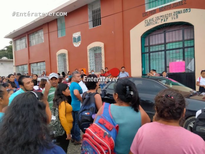 Padres de familia piden destitución de la directora en escuela primaria Benito Juárez García de la comunidad de Carrizal en la zona costera, durante este día realizaron una manifestación a las afueras de la escuela.