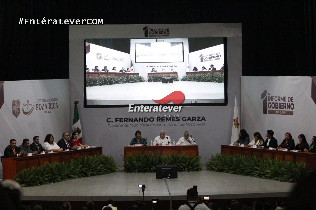 El alcalde Fernando Remes Garza rindió su primer informe de gobierno, en donde se destacó que durante este primer año de gobierno se han enfocado en los cinco ejes de la agenda 2030, en los que se reflejaron en los programas trabajo Poza Rica Vive Próspero, Seguro, Sostenible y con Bienestar que constituyen el proyecto Poza Rica Vive Bella.