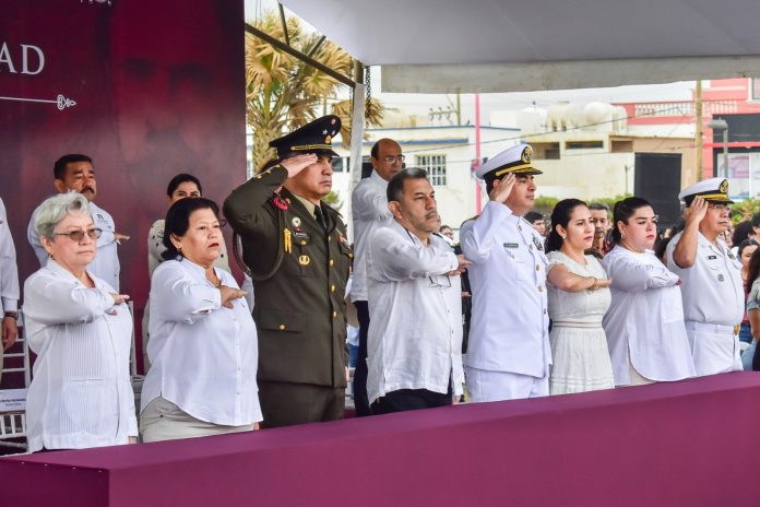 Durante la ceremonia militar, a la cual acudieron alumnos de la escuela primaria Artículo 123, se llevaron a cabo los Honores a la Bandera; elementos del Tercer Batallón realizaron una salva de fusilería en honor a los héroes de 1847 y 1914, además, el profesor Ronmel David Aguilar declamó el poema “Lealtad”, y se entonaron los himnos Nacional Mexicano y del Heroico Colegio Militar.
