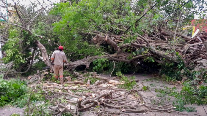 Los servidores de la dependencia del Ayuntamiento que preside Amado Cruz Malpica, acordonaron las áreas para resguardar la integridad de las personas, mientras trabajaron en el retiro de postes, láminas, árboles, cables, espectacular y caseta, de las viviendas y vialidades.