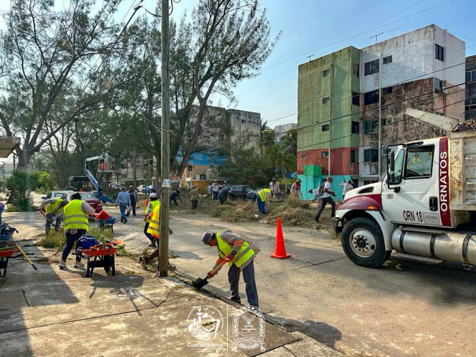 Como parte del ‘Operativo de Atención Prioritaria’, el Gobierno de Coatzacoalcos, implementó una jornada de mejoramiento de imagen urbana en la colonia Vistalmar, que incluyó chapeo, poda de árboles en altura, recolección de basura verde, libranza de luminarias y poda de jardineras