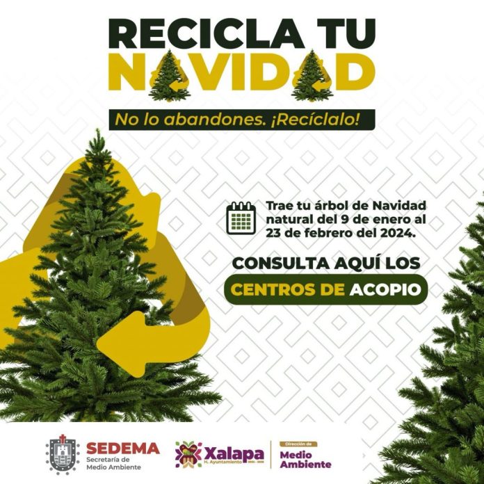 Xalapa, Ver.- Con el fin de contribuir la conservación de la imagen urbana, la mejora del medio ambiente y colaborar en las acciones de limpia pública, el Ayuntamiento, a través de la Dirección de Medio Ambiente, invita a la población a participar en la campaña Recicla tu Navidad 2024.