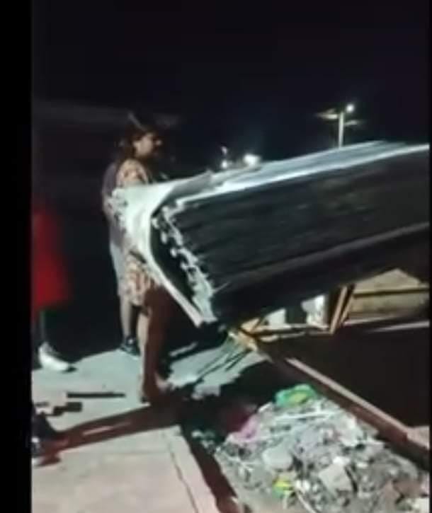 La autoridad en turno señalaron que durante la noche sorprendieron a estás dos personas sustrayendo láminas del auditorio municipal, mismas serían utilizadas para el beneficio de la comunidad