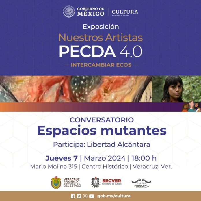 Durante la primera sesión, el jueves 7 de marzo a las 18:00 horas, se llevará a cabo el conversatorio Espacios mutantes, en el que la artista compartirá los detalles de la obra con la que participa en la muestra Nuestros artistas PECDA 4.0. Intercambiar Ecos. El diálogo es gratuito y abierto al público en general.