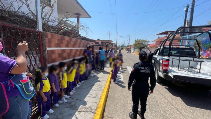 Minatitlán, Ver.- Elementos de Seguridad Pública Municipal de Minatitlán, en colaboración con la Jefatura de Tránsito y Vialidad, llevaron a cabo la actividad «Mi amigo el Policía» para los alumnos del kínder del Centro de Desarrollo Infantil Montessori. Durante esta iniciativa, se abordaron temas como la función del policía, el equipo táctico utilizado y la prevención del abuso infantil.