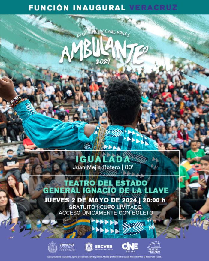 Dos recintos de la Secretaría de Cultura de Veracruz serán sede de la décima novena gira de documentales de Ambulante, organización sin fines de lucro dedicada a apoyar y difundir el cine documental como una herramienta de transformación cultural y social. En el Teatro del Estado “Gral. Ignacio de la Llave” se llevará a cabo la función inaugural de la Gira Ambulante 2024, el próximo jueves 2 de mayo a las 20:00 horas. Se presentará la película documental Igualada (2024), del director Juan Mejía Botero, quien cuenta con más de veinticinco años de experiencia. Este filme narra la historia de Francia Márquez, una activista rural colombiana que cuestiona el statu quo al emprender una campaña presidencial que se apropia del término «igualada», inspirando sueños de progreso para una nación entera. Hoy ella es la vicepresidenta de Colombia.
