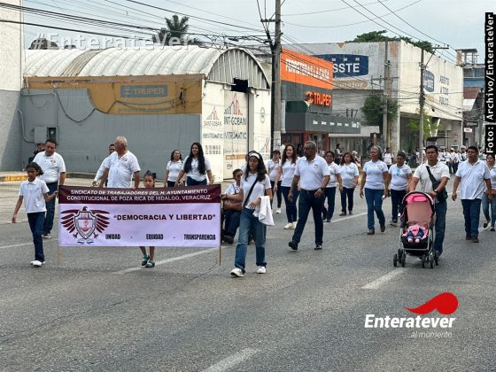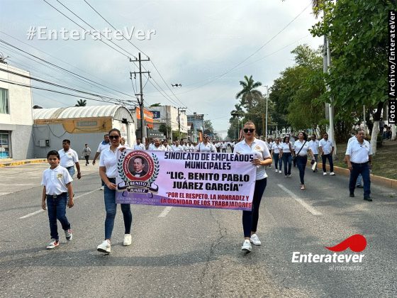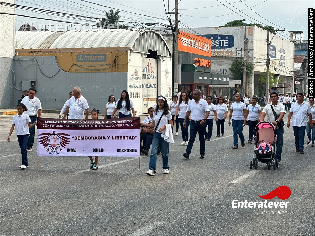 Exigiendo que se respeten y que se mejoren sus derechos como trabajadores, más de dos mil agremiados de diferentes sindicatos participaron en el desfile conmemorativo del día del trabajo este primero de mayo, en el municipio de Poza Rica.