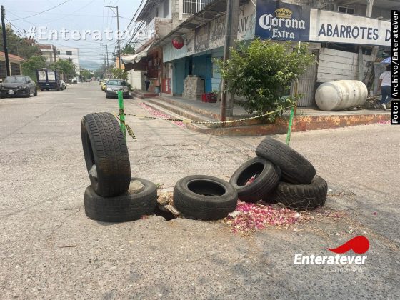 Vecinos señalaron que personal del Ayuntamiento ya acudió al lugar, pero no arreglaron, por lo que los vecinos se dieron a la tarea de colocar algunas llantas y cinta para delimitar el lugar y prevenir a los conductores del socavón que se ha generado, pues a decir de los afectados es una calle transitada.