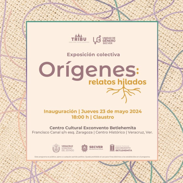 La Secretaría de Cultura de Veracruz, a través de su Unidad de Género, invita a la inauguración de la exposición colectiva Orígenes: relatos hilados en el Centro Cultural Exconvento Betlehemita. La inauguración tendrá lugar el próximo jueves 23 de mayo a las 18:00 horas. La entrada es gratuita.