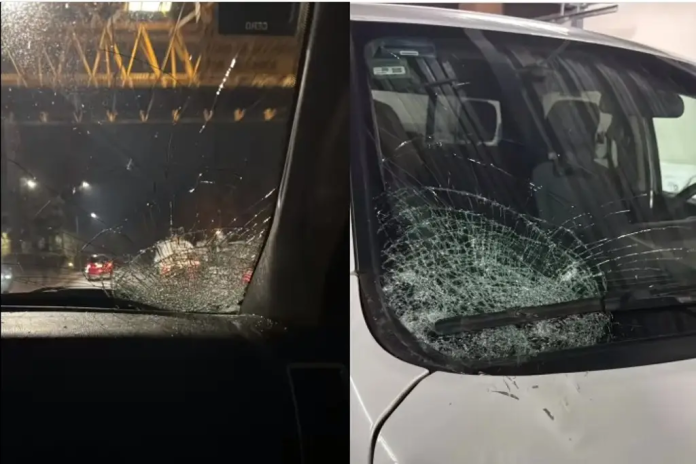 «Venimos saliendo de la oficina, por la avenida Lázaro Cárdenas, desde la parte superior nos aventaron un objeto, supongo que una roca, que impactó el vehículo de lado del copiloto», dijo.