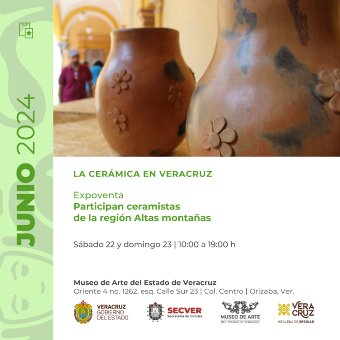 La Secretaría de Cultura de Veracruz, a través del Museo de Arte del Estado de Veracruz, invita a la segunda jornada La cerámica en Veracruz, los días sábado 22 y domingo 23 de junio, en las instalaciones del recinto museístico. La entrada es gratuita.