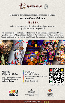 El presidente municipal, Amado Cruz Malpica, invitó a los alcaldes del sur de Veracruz y al público en general a disfrutar de la presentación vía zoom del programa ‘Códigos del Vivir Bien de los Pueblos Ancestrales del Mundo’ que realiza la Vicepresidencia del Estado Plurinacional de Bolivia.