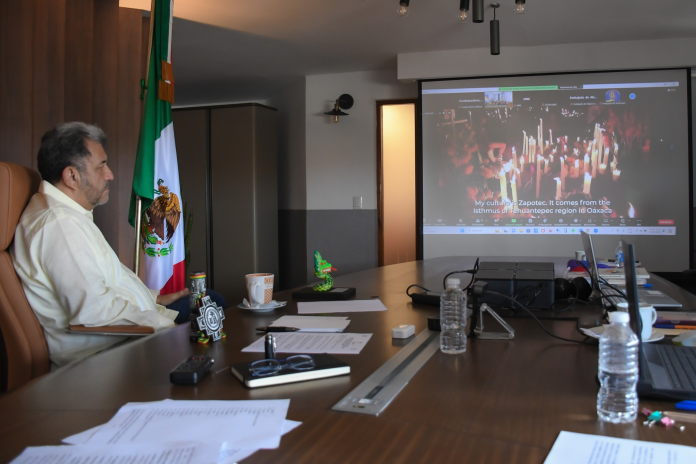 Desde Coatzacoalcos, vía Zoom, el edil porteño tuvo su intervención y explicó que este municipio tiene la característica de ser un lugar de una confluencia de culturas precolombinas, registrando aproximadamente 39 poblaciones originarias que representan el 30 por ciento de la población de esta ciudad, estando a la cabeza comunidades del pueblo Zapoteco, Nahua y Mixe.