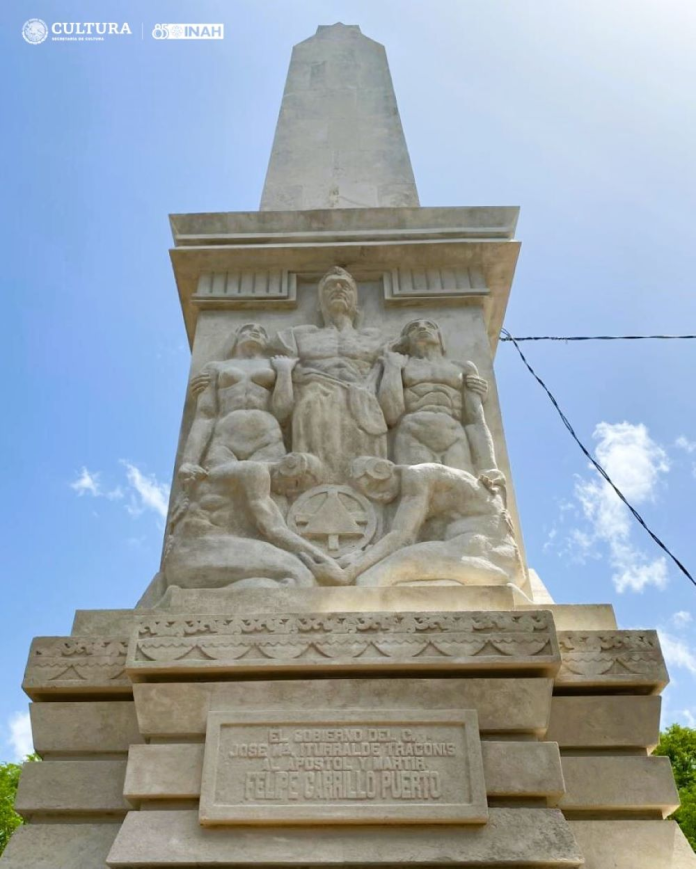 Mérida, Yuc.- En esfuerzo conjunto de la Secretaría de Cultura del Gobierno de México, a través del Instituto Nacional de Antropología e Historia (INAH), del Gobierno de Yucatán y del ayuntamiento de esta ciudad, se concluyó el trabajo de restauración sobre el obelisco a Felipe Carrillo Puerto, ubicado en el Paseo de Montejo, iniciado a finales de enero de 2024.
