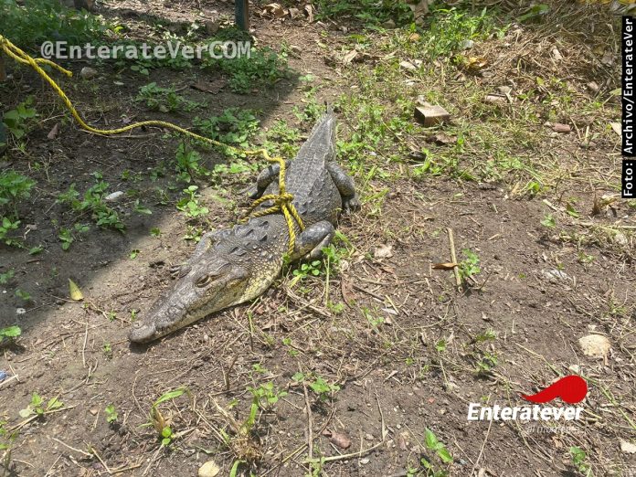 Personal de protección civil en Papantla, lograron la captura de un cocodrilo, los hechos en la zona de la bocana en la comunidad Rancho Playa.