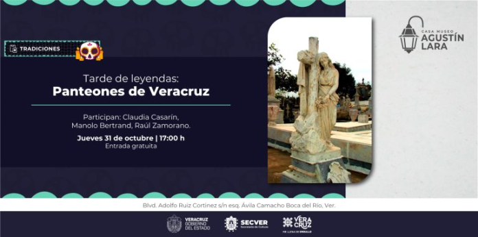 La Secretaría de Cultura de Veracruz, a través de la Casa Museo Agustín Lara, invita al público a la Tarde de leyendas que en esta ocasión presenta los relatos basados en los Panteones de Veracruz. La actividad se realizará en el Auditorio Azul y Plata el jueves 31 de octubre a las 17:00 horas. La entrada es gratuita.