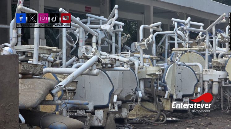 Consultorios, laboratorios y áreas clínicas de Odontología fueron vaciados de los sillones profesionales, piezas de mano, lámparas de fotocurado y unidades dentales que, dañados por la humedad y el lodo, han sido colocados en el acceso principal como evidencia de la devastación que el agua causó hace ya varias semanas.