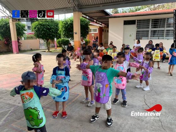 Poza Rica, Ver.- La falta de útiles escolares provocada por las recientes lluvias en el fraccionamiento La Florida fue atendida mediante la entrega de apoyos a estudiantes del Jardín de Niños Francisco Gabilondo Soler “Cri-Cri”, donde 51 menores recibieron mochilas equipadas con material básico para continuar sus clases.