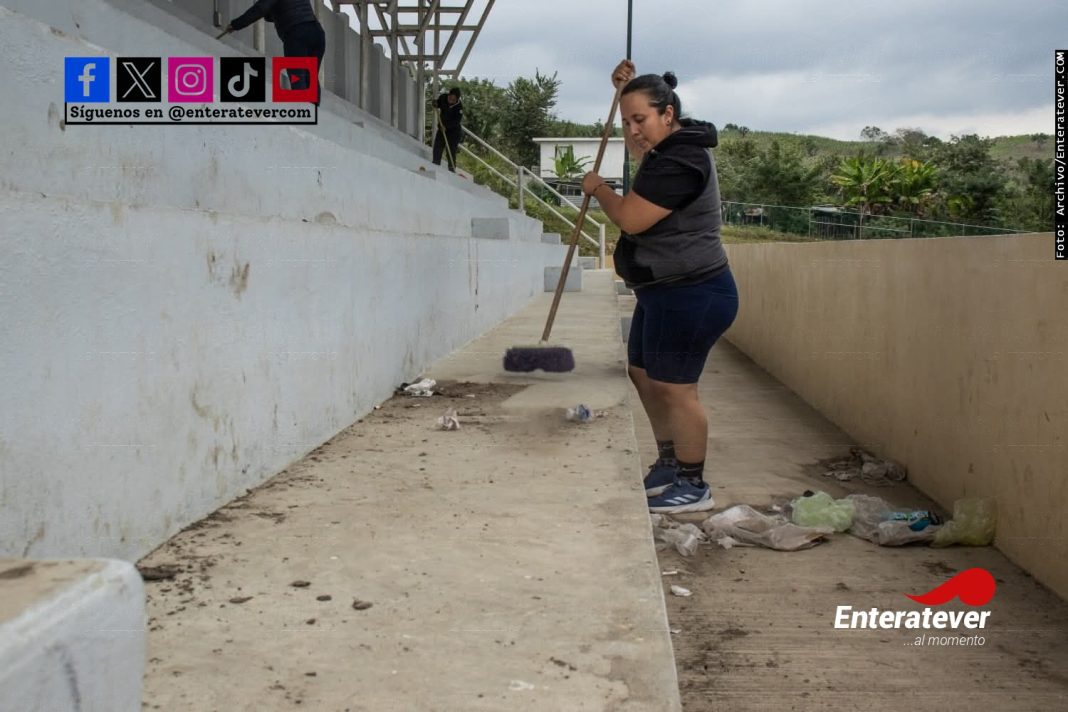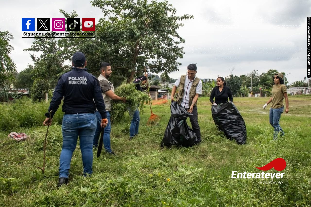 Las primeras acciones se realizaron en el campo Infonavit Coatzintla, ubicado en la colonia Ampliación Camioneros, donde elementos de la Policía Municipal, Protección Civil y habitantes de la zona participaron de manera conjunta en labores de limpieza y rehabilitación.