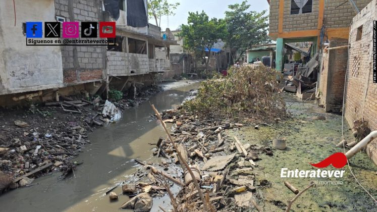 Poza Rica, Ver.- Vecinos de la calle Guadalupe Victoria, en la colonia 27 de Septiembre, alertaron que el arroyo Salsipuedes continúa a un nivel peligroso, prácticamente a la altura de sus viviendas, lo que los mantiene en constante preocupación ante la posibilidad de que una lluvia provoque un nuevo desbordamiento.