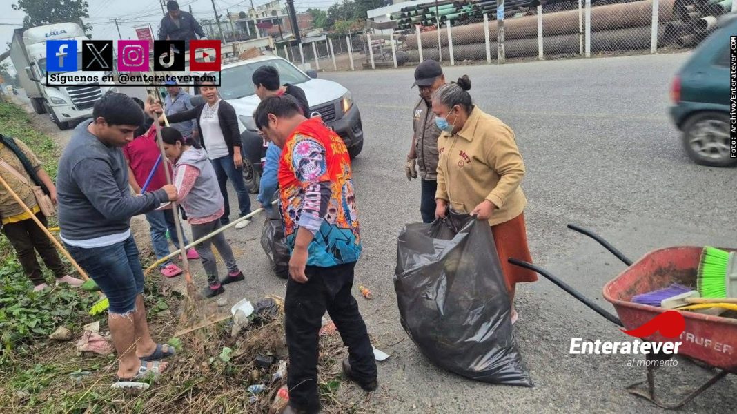 Habitantes de comunidad Victoria Km 47, Colonia Arboledas y el Fraccionamiento Tajín realizaron trabajos de limpieza sobre la carretera Poza Rica–Cazones, esto como parte de una jornada enfocada en mejorar la imagen urbana.