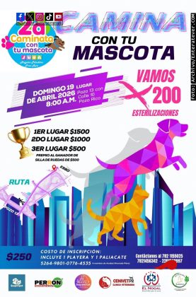 Poza Rica, Ver.- Con el objetivo de apoyar a dueños de mascotas de zonas afectadas por las recientes inundaciones, fue anunciada la Segunda Caminata con tu Mascota, una actividad con causa que busca reunir recursos para realizar al menos 200 esterilizaciones en animales de compañía.