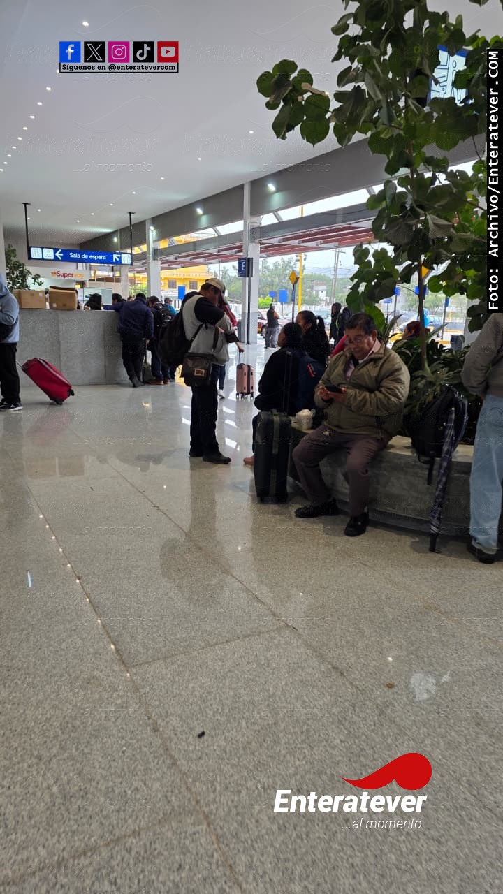 Mientras tanto, personal en taquillas brinda orientación sobre cambios, cancelaciones y reprogramaciones, en tanto se restablecen las condiciones para retomar las corridas, dejando a numerosos viajeros a la expectativa de poder continuar su trayecto en las próximas horas.