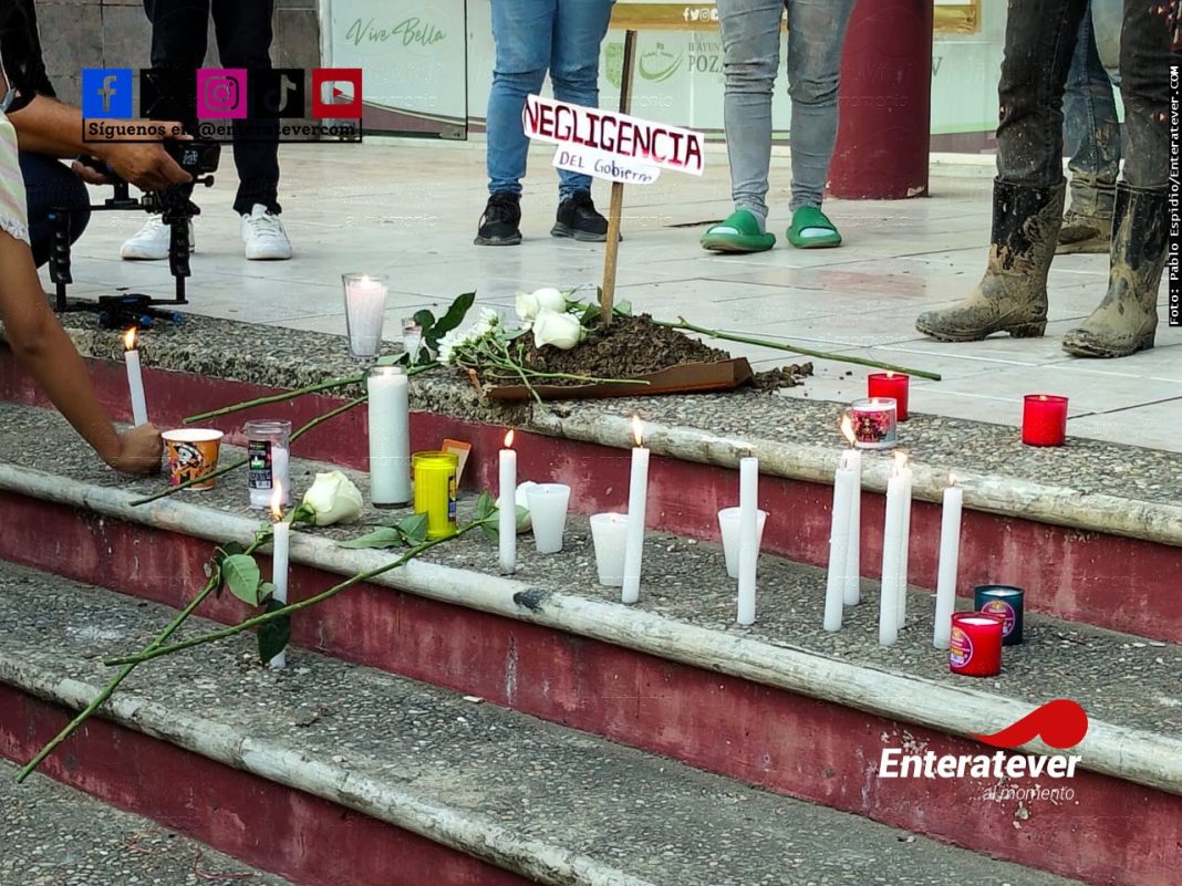 «Hoy frente al palacio municipal encendemos estás veladoras, en honor por cada persona que perdió la vida, por cada familia afectadas y por un pueblo que se niega ser silenciado, no fueron lluvias ligeras, mucho menos un desbordamiento ligero como lo han querido pintar» expresaron.