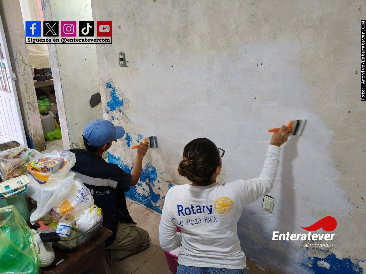 Poza Rica, Ver.- Como parte de una estrategia para mejorar las condiciones de habitabilidad en zonas afectadas del municipio, el Club Rotario Poza Rica y Rotaract Poza Rica A.C. mantienen acciones de rehabilitación de viviendas, priorizando a familias en situación vulnerable.
