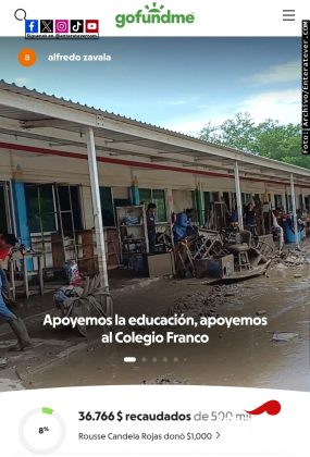 La colecta se realiza a través de la plataforma GoFundMe, bajo el nombre “Apoyemos la educación, apoyemos al Colegio Franco”, donde se muestran imágenes del plantel afectado y del mobiliario cubierto de lodo, con el objetivo de transparentar la situación y motivar a más personas a sumarse.