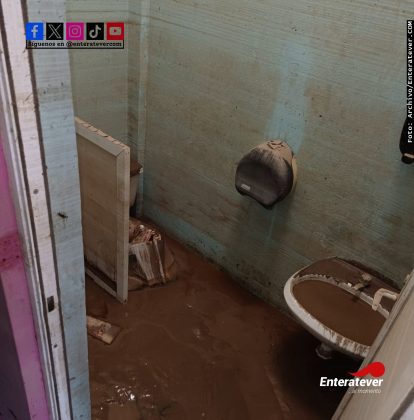 Uno de los casos más críticos es el del Colegio Franco, ubicado en la colonia Palma Sola, a unos metros del río Cazones, zona donde la corriente dejó daños significativos. El plantel quedó cubierto de lodo, con mobiliario destruido y varios espacios educativos completamente inhabilitados.