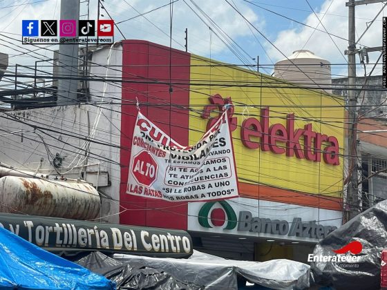 Como muestra de su hartazgo, locatarios colocaron lonas en las afueras de los mercados del centro, dejando constancia de su preocupación por los constantes asaltos registrados en los últimos meses.
