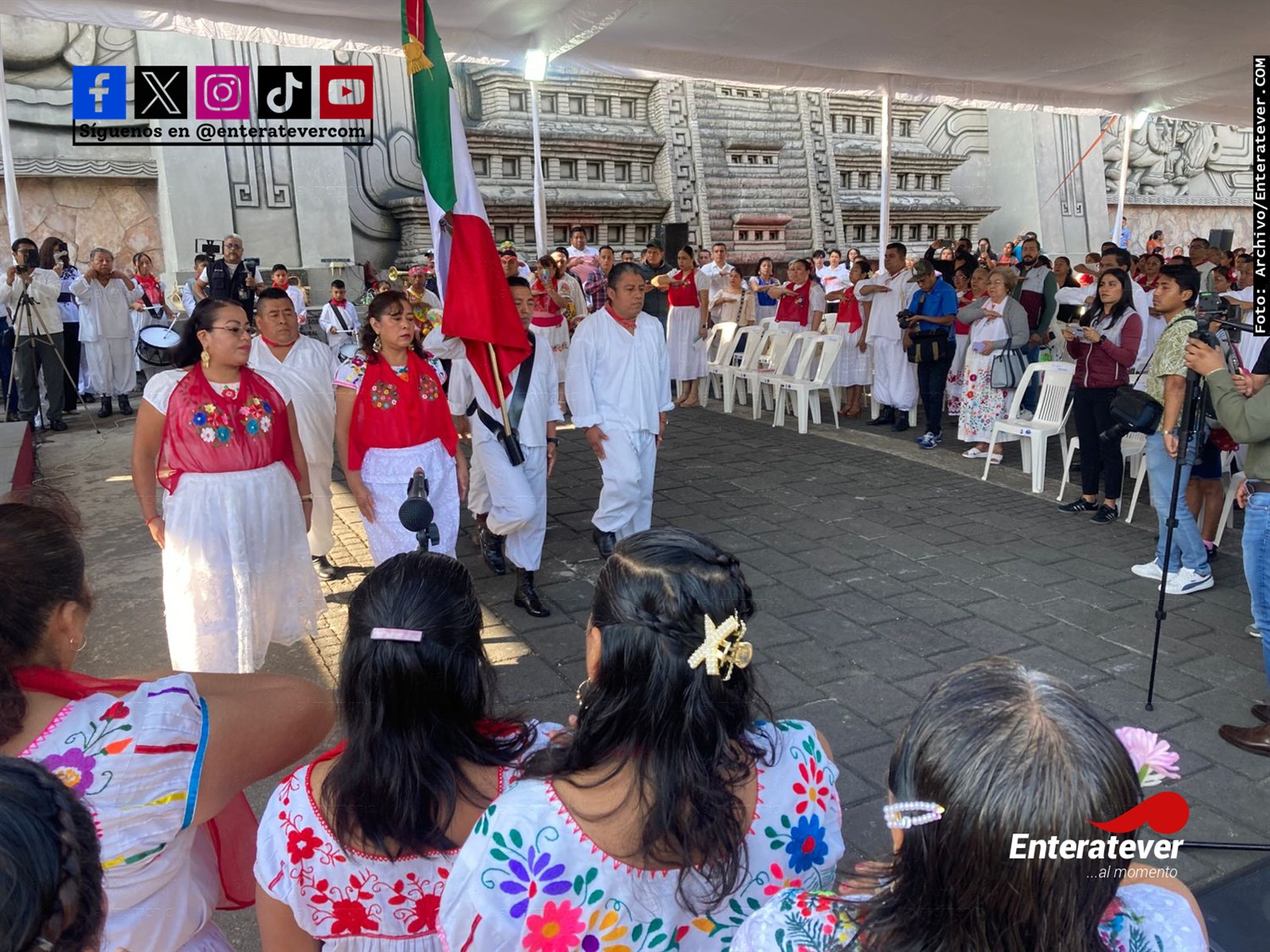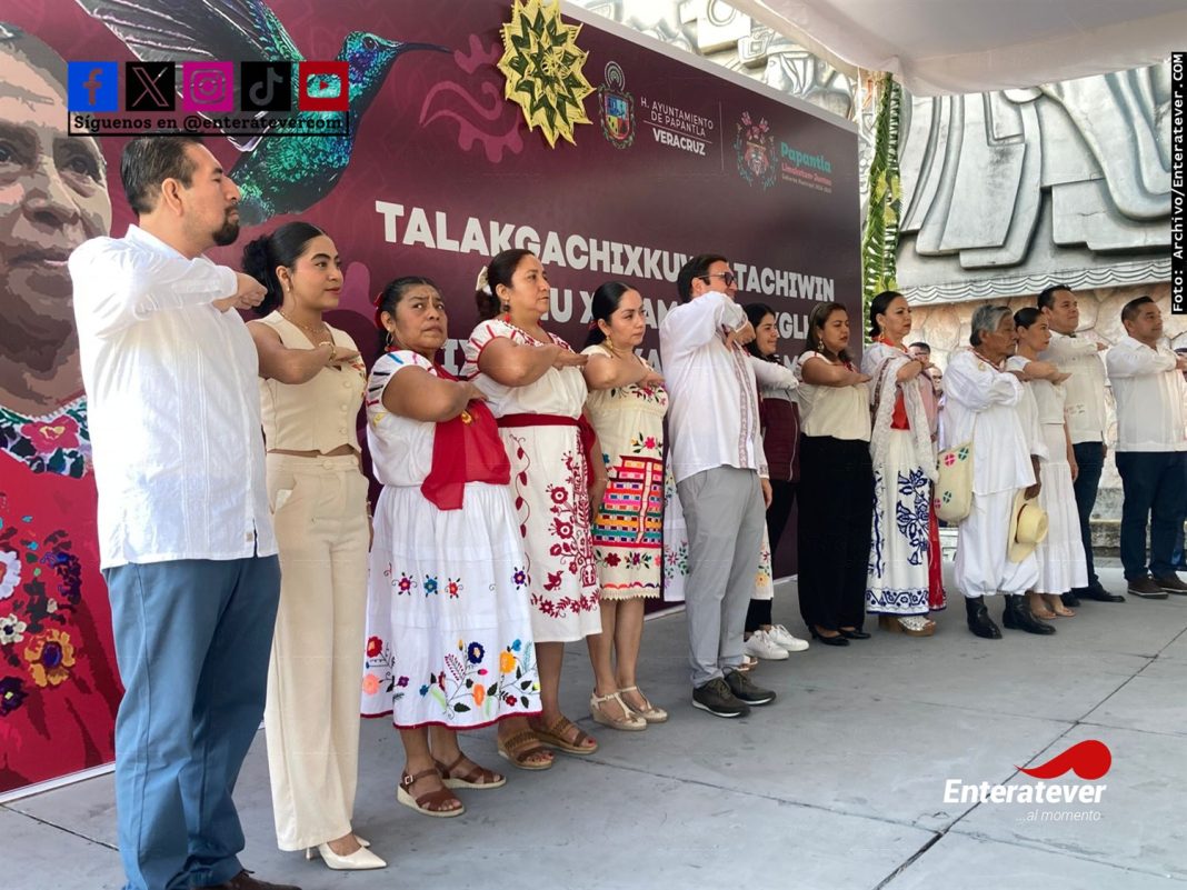 El encuentro tuvo cita en la explanada del mural homenaje a la cultura totonaca, primeramente, un acto cívico en el cual se entonaron el himno mexicano y el himno a Veracruz en lengua originaria totonaca.