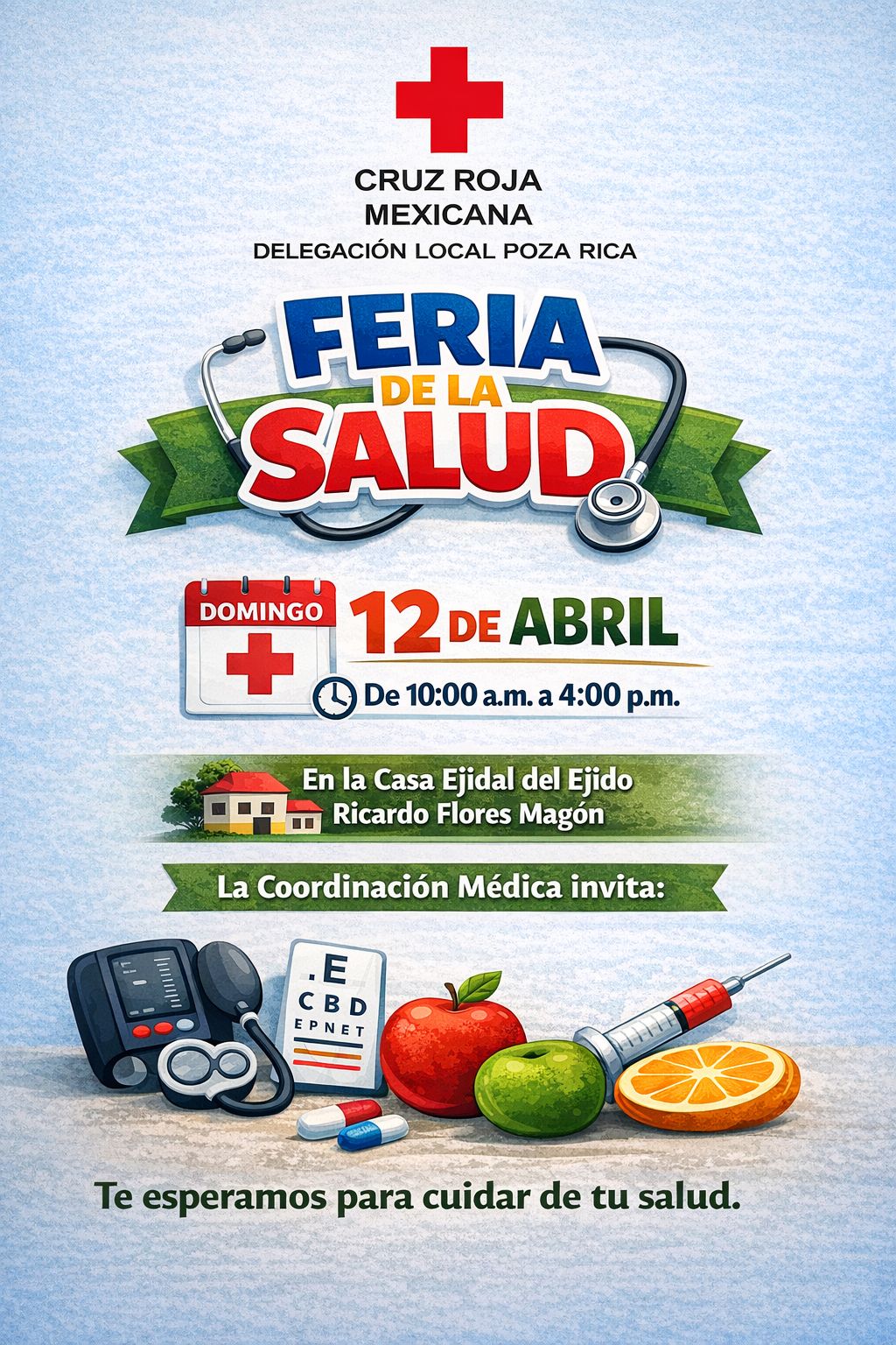 Tihuatlán, Ver.- Con el objetivo de promover la prevención y el cuidado de la salud, la Coordinación Médica de la Cruz Roja Mexicana, Delegación Poza Rica, anunció la realización de una Feria de la Salud dirigida a la población en general.
