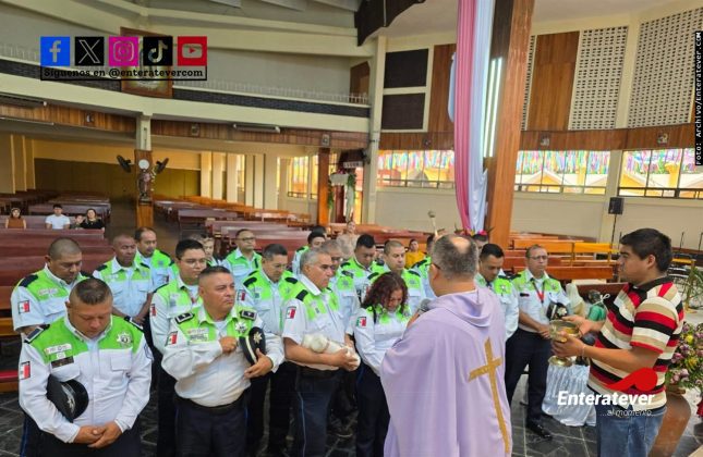 La ceremonia religiosa fue encabezada por el titular de la corporación, Pedro Quiroz, quien junto a elementos operativos y administrativos acudió para encomendar su labor diaria, agradecer por la protección recibida y refrendar su compromiso con la seguridad vial y el bienestar de la ciudadanía.