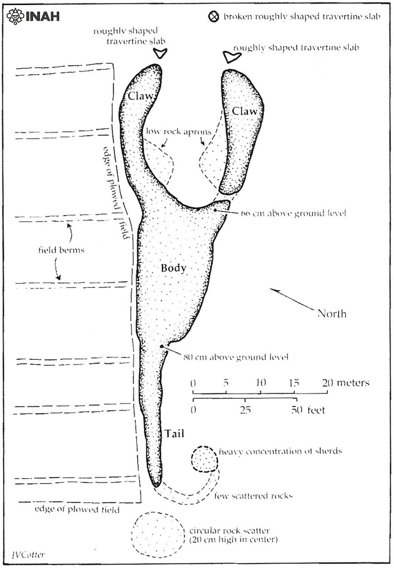 La biósfera Tehuacán-Cuicatlán continúa revelando riquezas naturales y culturales, esta vez, al sur del estado de Puebla, donde se ubicó un montículo efigie en forma de escorpión, elaborado de piedra de travertino, cuya ocupación se sitúa entre los periodos Epiclásico Tardío y Posclásico Temprano (600-1100 d.C.).